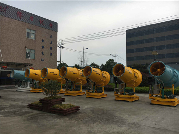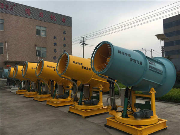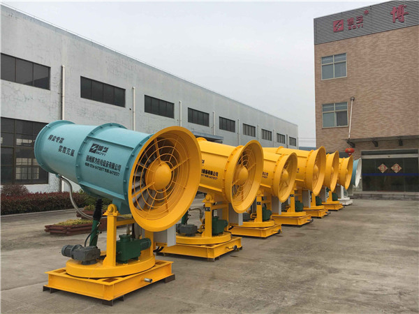 智能粉塵控制器工作原理是通過高壓將水霧化成與粉塵大小相當(dāng)?shù)念w粒,在風(fēng)機(jī)作用下,將水霧定向噴射到指定位置,在塵源處的上方及其周邊進(jìn)行水霧覆蓋。粉塵顆粒隨氣流運動與水霧顆粒發(fā)生碰撞、吸附、凝結(jié),濕潤的粉塵顆粒繼續(xù)吸附其他粉塵顆粒,逐漸凝結(jié)成顆粒團(tuán),在自身的重力作用下快速沉降到地面,從而達(dá)到除塵抑塵目的。